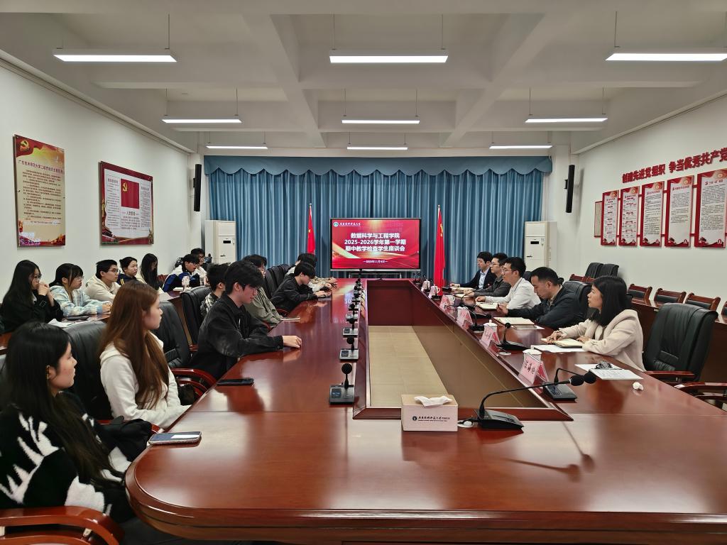 为深化本科教学过程管理,构建教学质量持续改进长效机制,11月4日,数据科学与工程学院分时段组织召开2025-2026学年第一学期期中教学检查学生座谈会与教师座谈会。数据科学与工程学院党委书记、河源校区管委会副主任刁桂军,河源校区管委会副主任李冲,学院党政办负责人及辅导员等参会,聚焦教学痛点难点、凝聚育人共识,为提升数据科学领域人才培养质量注入强劲动能。